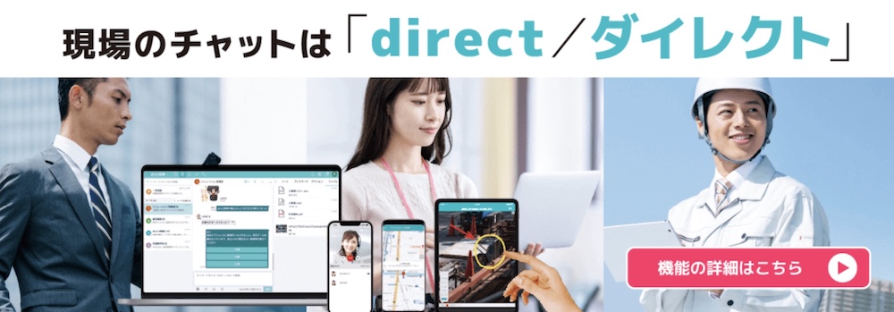 directは、建設現場でのコミュニケーションに強いのが特長で、ゲストモード機能で元請や下請企業間の情報共有をスムーズで安全に行えます。
