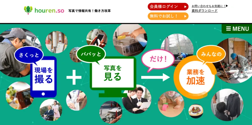 株式会社Brassicaが提供している作業日報アプリ「houren.so」は、現場で生まれた作業日報アプリです。写真+コメントだけで日報を作成でき、入力負担を抑えながら現場の状況を共有できます。