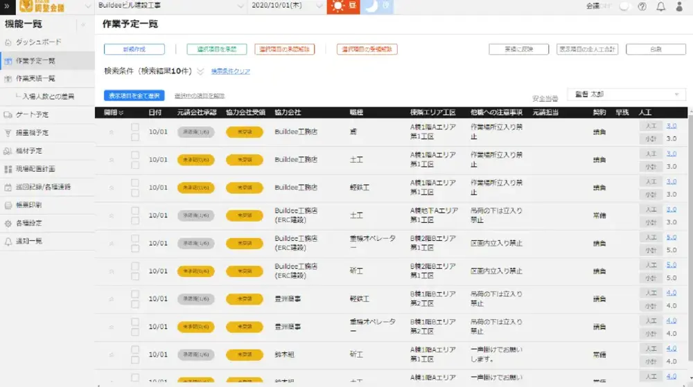 Buildeeは、大規模現場における「調整・労務・入退場管理」に強みを持つサービスです。