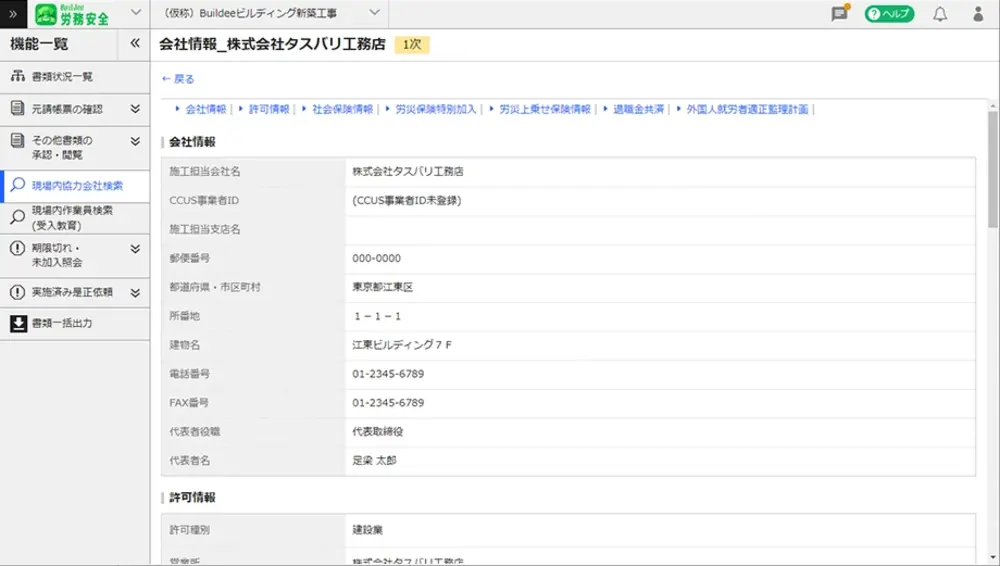 • 基本情報や現場情報の登録