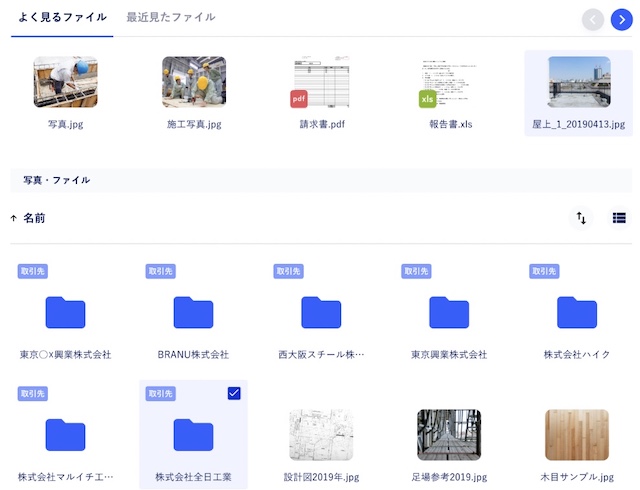 アプリ内で撮影した写真は、容量を軽量化して案件ごとのフォルダに保存されます。そのため、現場にいながら写真をアップロードできるので、時間や場所に縛られず写真管理ができます。