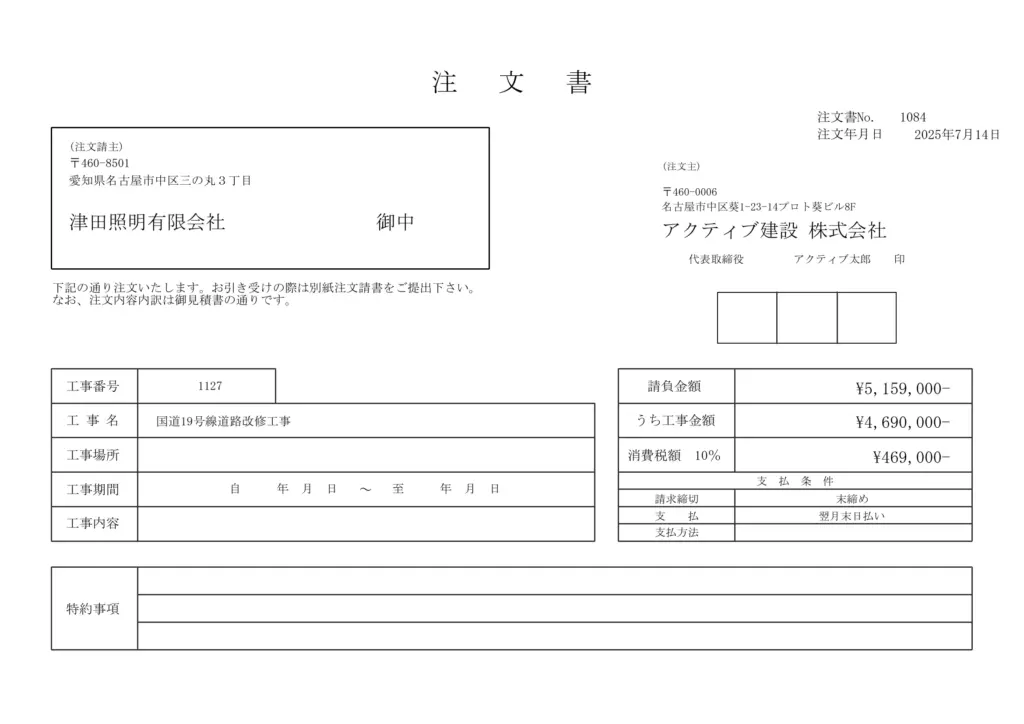 資材と下請の両方に対応した発注書を簡単に作成でき、過去の材料単価も瞬時に検索可能です。